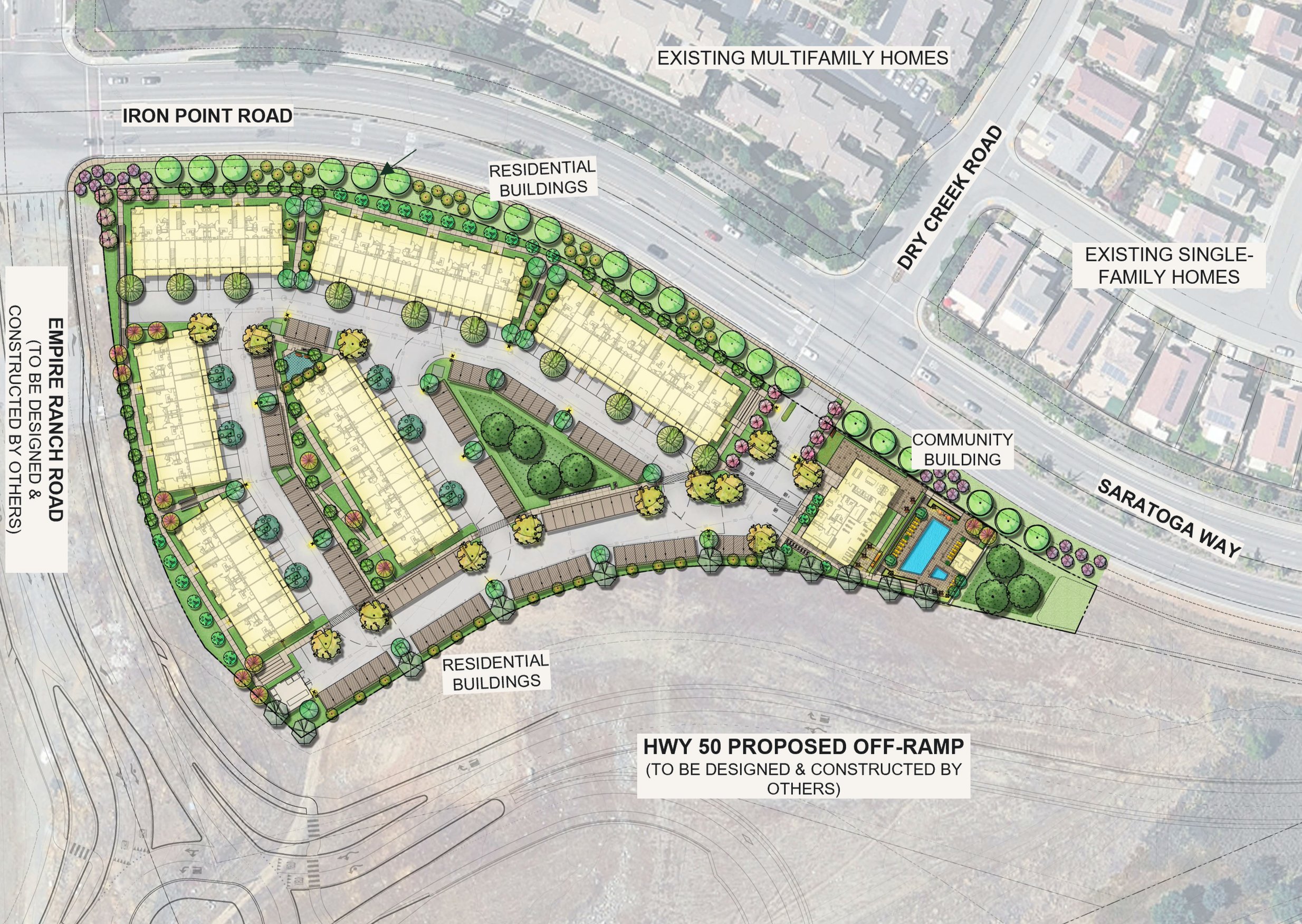 278 on-site parking spaces located within the site that won’t be visible from Iron Point or Empire Ranch Roads